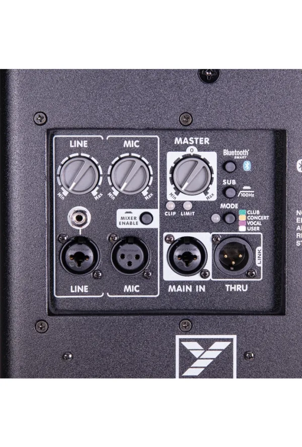 | Controls | Mixer Enable, DSP Mode (Club, Concert, Vocal, Custom), Bluetooth Enable, Sub (100 Hz HP Filter) |