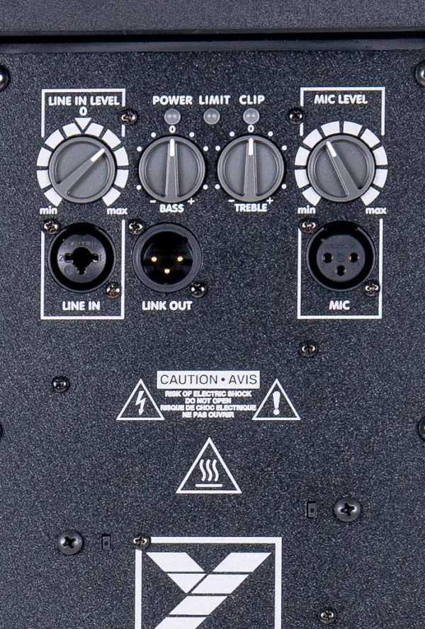 The rear panel features a Combi-Jack line input and XLR mic input with independent level controls, and a balanced XLR output to link multiple speakers in an array or as repeater cabinets around a large room. A two-band master EQ lets you quickly dial in a balanced sound to fit into your system and your space.